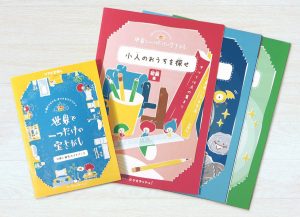 シールを貼ることでページが完成し、絵本としてお楽しみいただけるます。 アリスと一緒に幻の五線譜を探そう。1ページ目・明治探偵シリーズ 2ページ目・ある友人からの手紙シリーズ 3ページ目・バーチャル謎解きプログラム 4ページ目・おうちde宝探し・キット 5ページ目・おうちde宝探し・クリアファイル