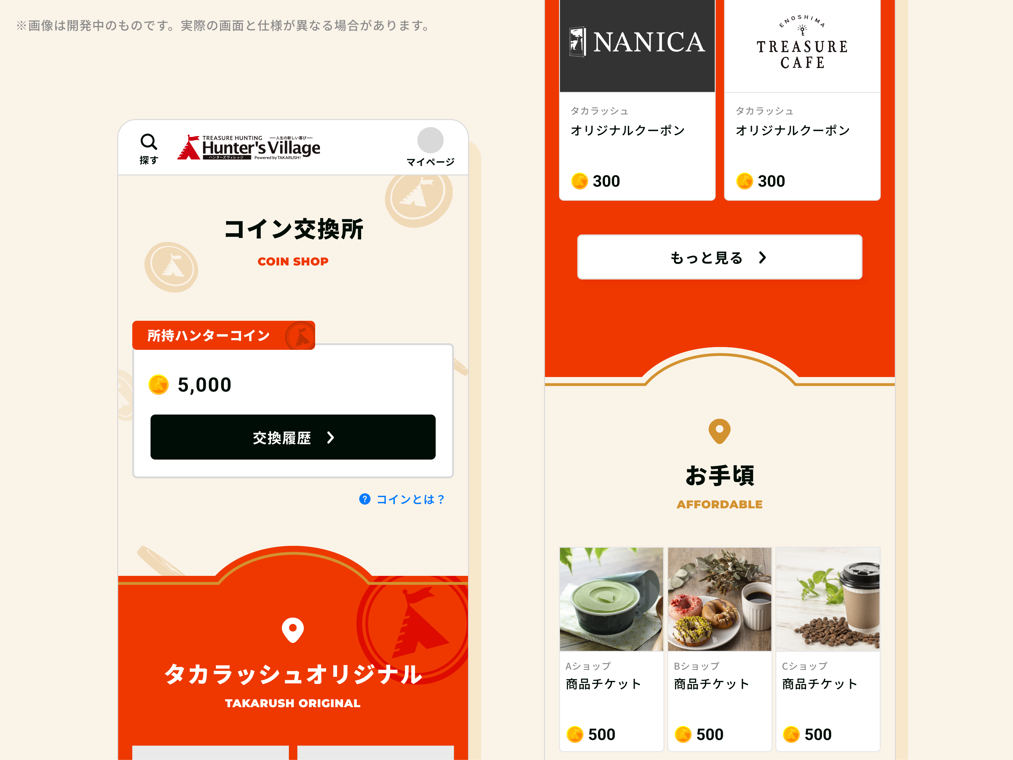 貯めたコインはハンターズヴィレッジ内のコイン交換所(2025年4月末頃実装予定)で、各種ギフトや割引クーポン、アクティビティなどと交換することができます。