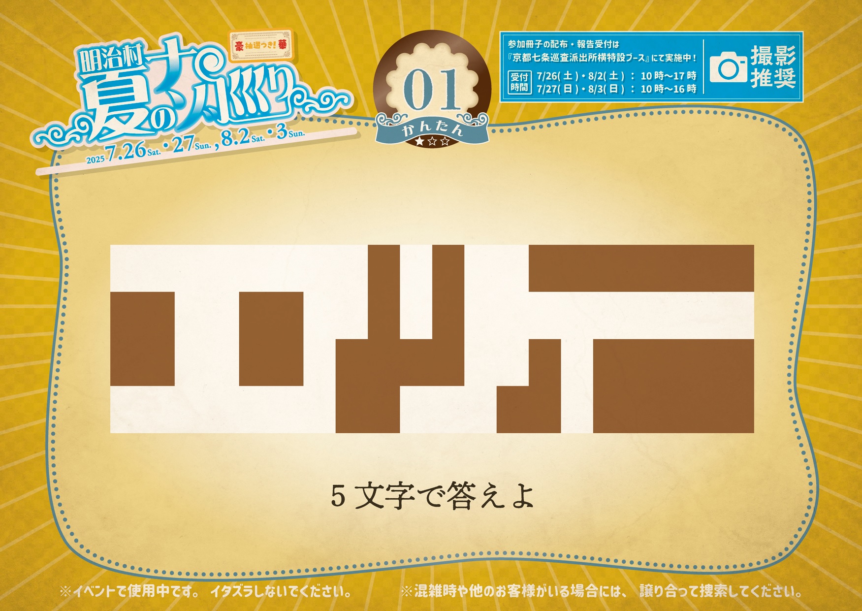 なんと!7/26,27と8/2,3は別のポストカード謎をご用意しています。