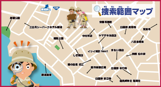●無料でご参加いただけますが、捜索に必要な交通費はお客様のご負担となります。