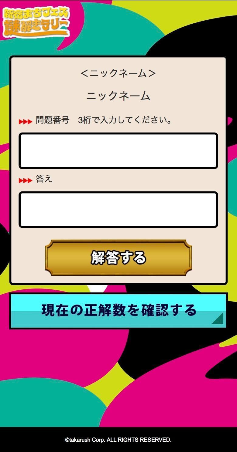 新宿区新宿3-37-2 営業時間:10:00~19:007問以上正解すると、賞品が当たる抽選に応募できます。 案内所スタッフに「現在の正解数を確認する」の画面を見せ、報告してください。 |