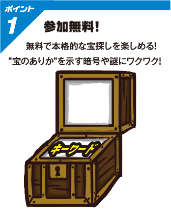 | 探検グッズ | [必須] ・宝の地図(ダウンロードした参加冊子) ※チラシをお持ちの方は、裏面のスタンプ欄も発見報告用にご利用いただけます。 ・ペン [便利グッズ] ・スマートフォン、タブレット、携帯電話 ・バインダー ・歩きやすい靴 ・虫よけスプレー ・日やけ止め ・帽子 ・タオル ・水筒 ・マスク ・手指消毒用アルコールスプレー |