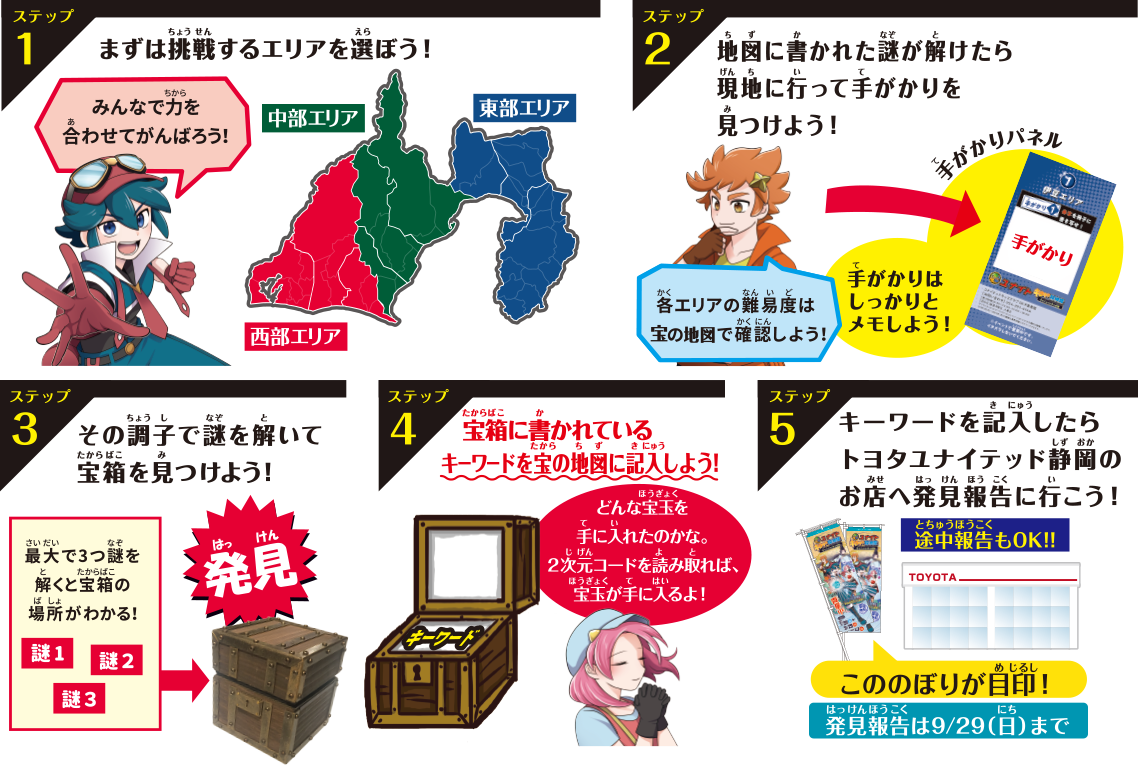 このイベントは、宝の地図に描かれた謎を解き明かしながら、静岡県内9エリアに隠された宝箱のありかを見つけ出す体験型のリアル宝探しゲームです。